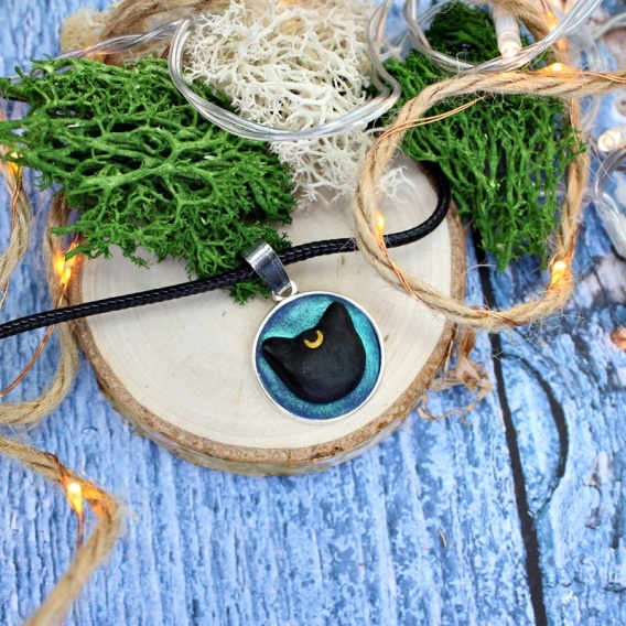 Ręcznie robiony naszyjnik. Zawieszka wykonana z profesjonalnej gliny polimerowej na metalowej podstawie. Modelina zabezpieczona jest lakierem satynowym.